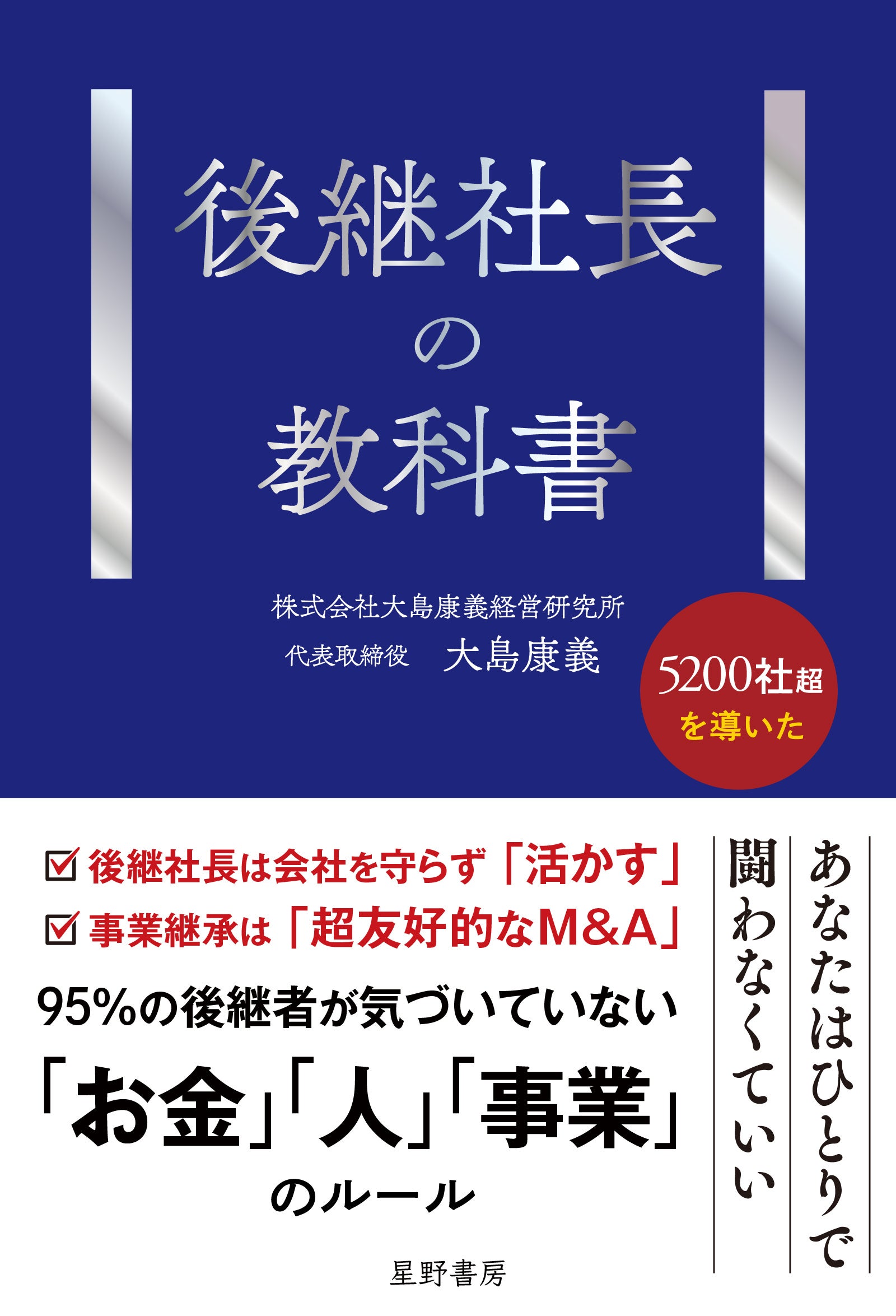 星野書房(所在地:東京都港区 https://silas.jp)は、後継社長に特化した経営実践書『後継社長の教科書』(著:大島康義 おおしま・やすよし https://www.k-bc.co.jp)を4月27日に発売します。