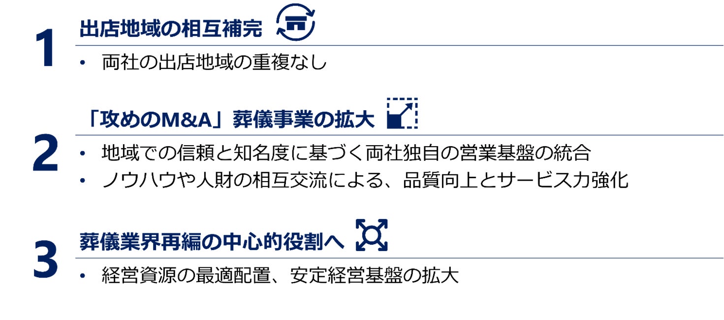 両社の経営統合は、日本におけるエンディング業界を取巻く課題・問題解決にも資するものであり、両社の質の高いサービスによって、超高齢社会における課題・問題解決に貢献し、より一層、安心と信頼のサービス提供に努めてまいります。