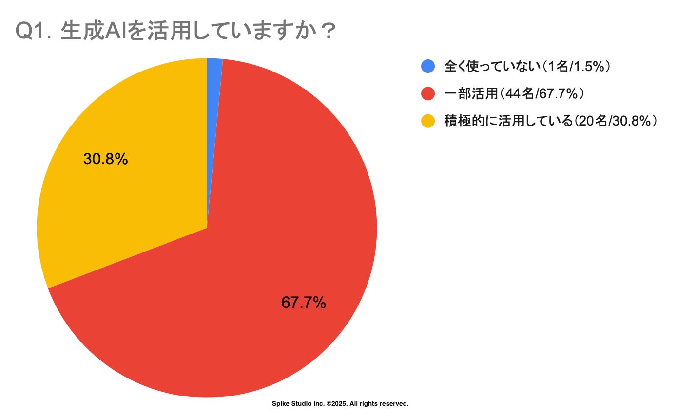 スパイクスタジオがDXPO東京’25[秋]の来場者に実施したアンケートでは、「生成AIを活用している」と回答した方は98.5%に達しました。一方で、興味深いギャップが浮かび上がっています。