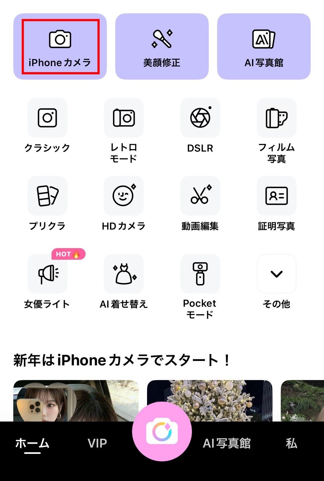 機能場所:【BeautyCam トップ】 → 【iPhoneカメラ】