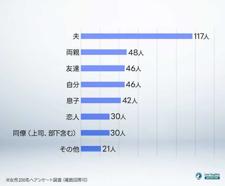 バレンタインチョコレートを贈る相手を調査したところ、「夫」と回答した方が117人と最も多い結果となりました。