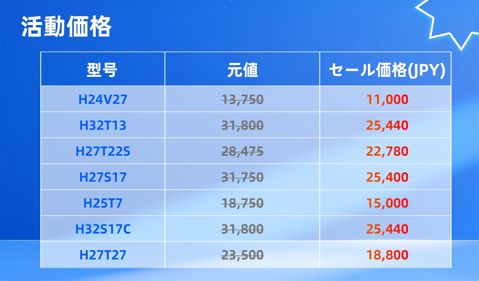 今回のセールでは、以下の人気モデルを特別価格で提供いたします: