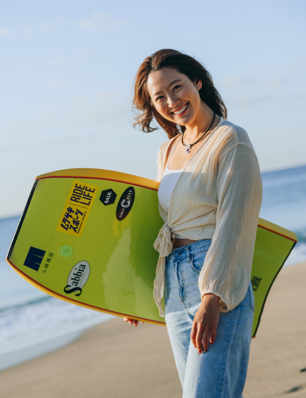 タレント、女優、女性モデル、プロボディボーダーと様々な顔を持ち、現在はボディボードの「World championship tour」を転戦し世界を駆け巡っている。趣味・特技は、旅行、サーフィン、ランニング、ボディボード、鉄棒。