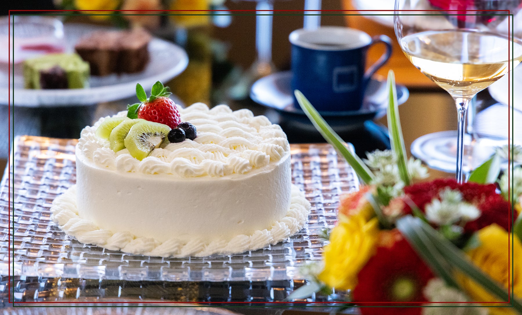 お祝いの席にふさわしいホールケーキをご準備します。メッセージを添えることも可能で、結婚記念日や誕生日、還暦のお祝いなど、ゲストの笑顔を引き出すサプライズ演出に最適です。