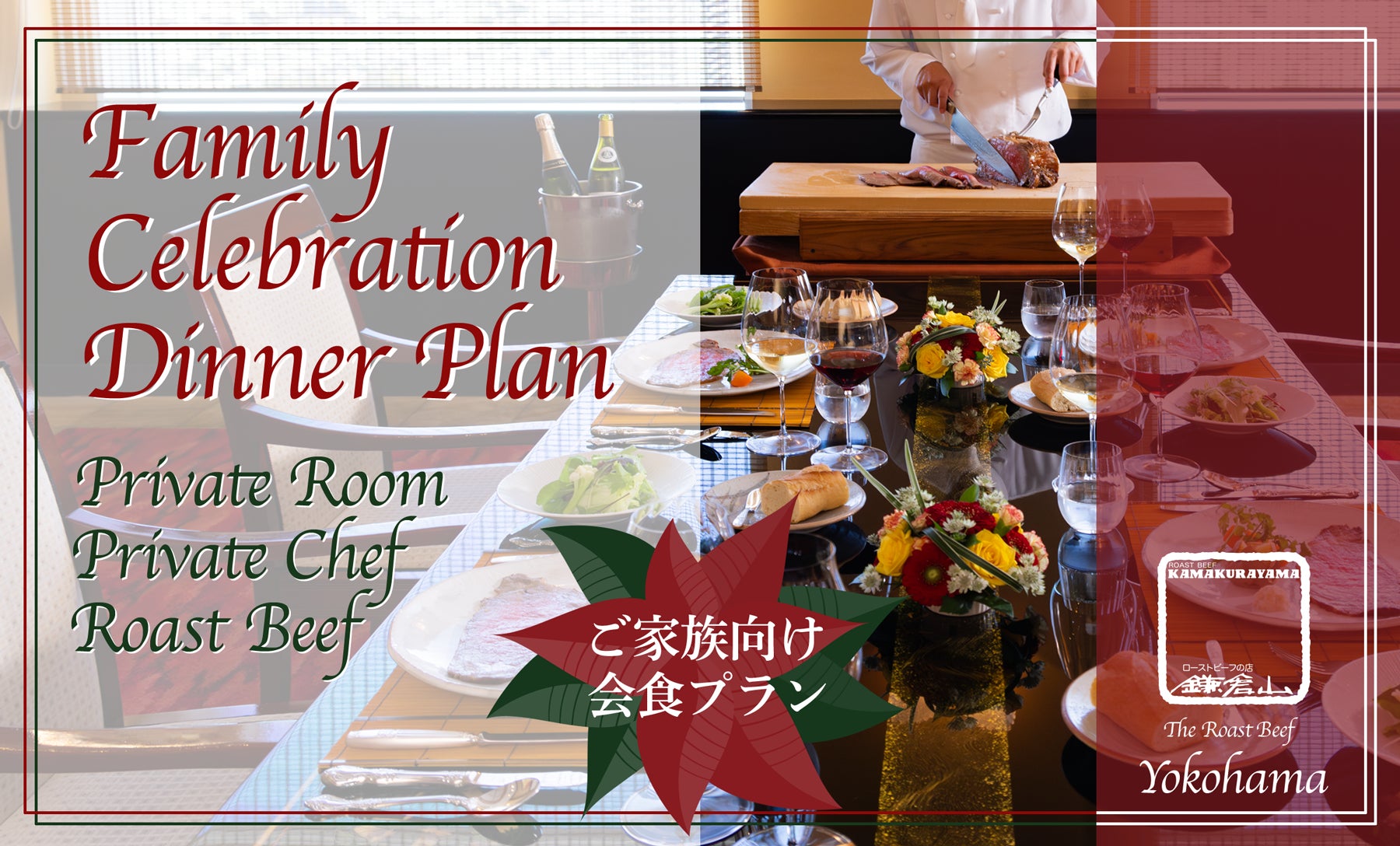 ローストビーフの店 鎌倉山 横浜スカイビル店では、大切な家族の節目を祝うための特別な会食プランをご用意しました。専属シェフが目の前で丁寧にスライスする黒毛和牛のローストビーフと、旬の食材を贅沢に取り入れたコース料理をお楽しみいただけます。