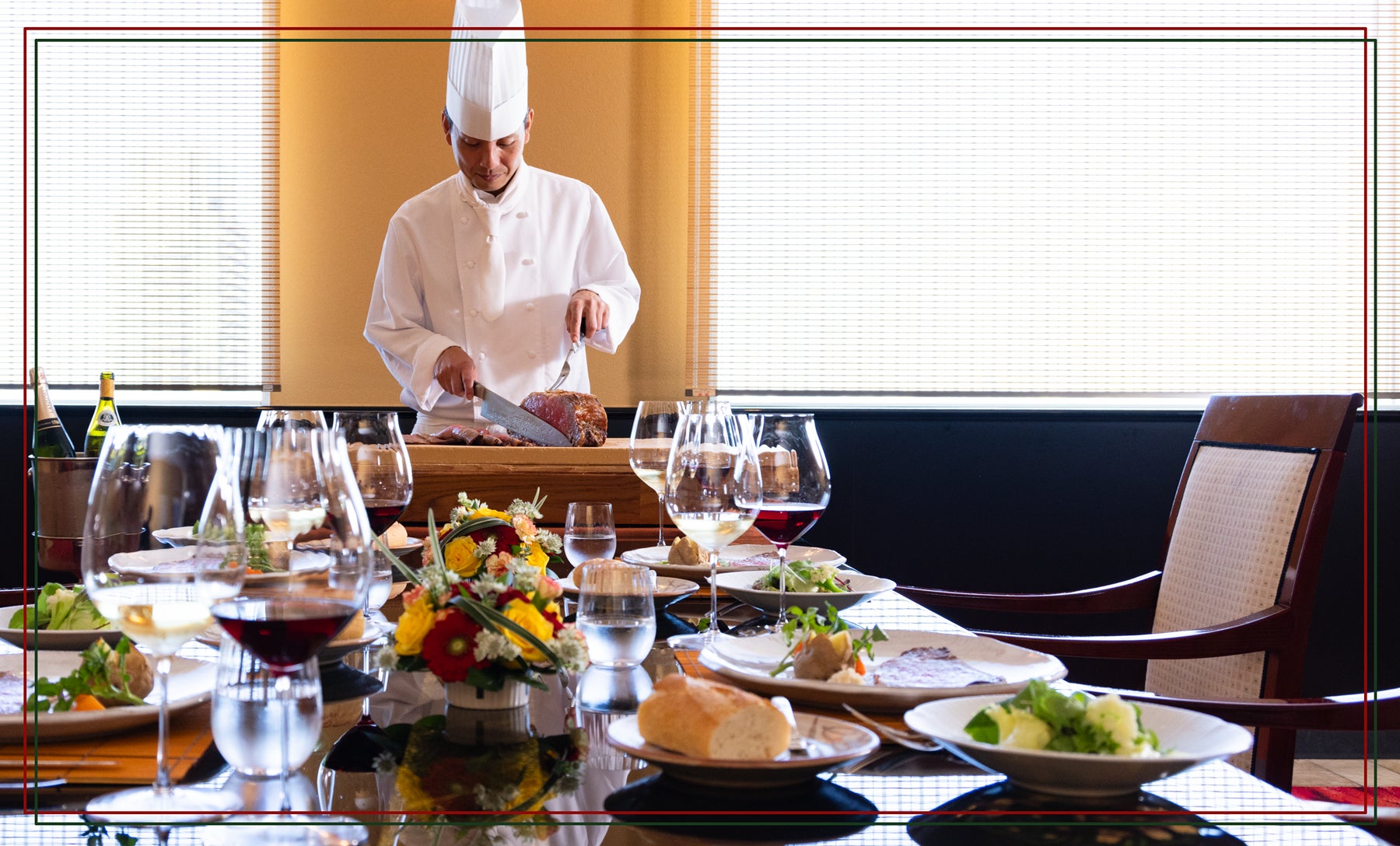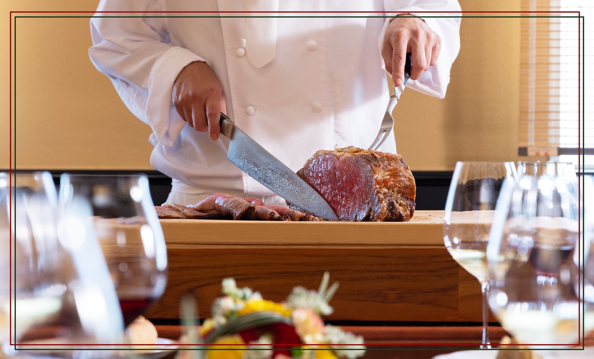 その特別な一皿は、ゲスト皆様のテーブルの目前で丁寧にスライスされ、芳醇な香りが広がる瞬間をお楽しみいただけます。熟練の技でサーブされるその姿は、穏やかな感動とともに、心が満たされる幸せな時間をお届けします。