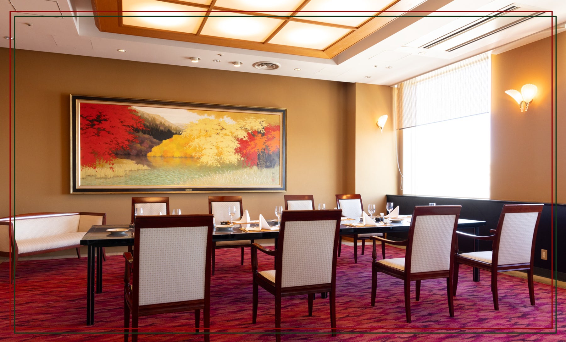 完全個室のプライベートルームでは、家族や大切な方々とともに、誰にも邪魔されることなく特別な時間をお過ごしいただけます。シンプルかつ品格あるデザインの家具で装飾された空間は、少人数の宴会や重要な会議、婚約の席など、あらゆる用途に対応可能。
