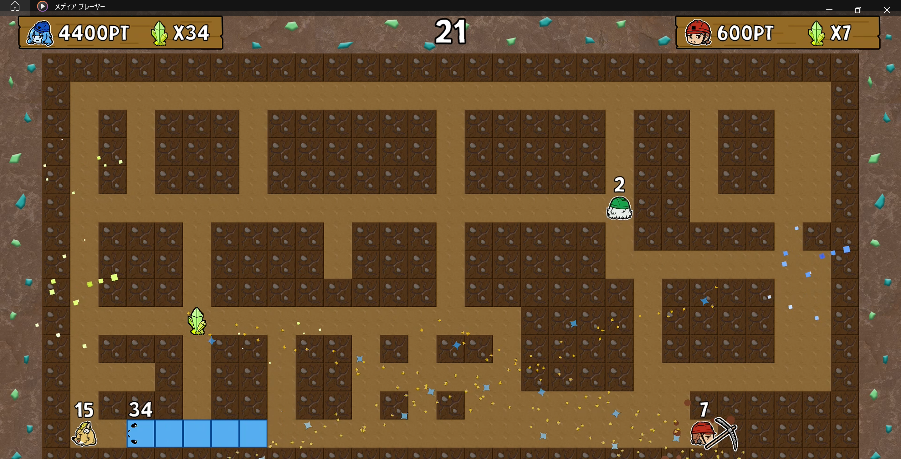 1VS1の対戦で、フィールドにある旗を多く集めたチームの勝ちというゲームです。フィールドにある魔法の実を集めてスライムを増やし、スライムを駆使して旗を集めます。