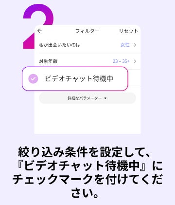 STEP2:絞り込み条件を設定して、『ビデオチャット利用可能』にチェックマークを付けてください。