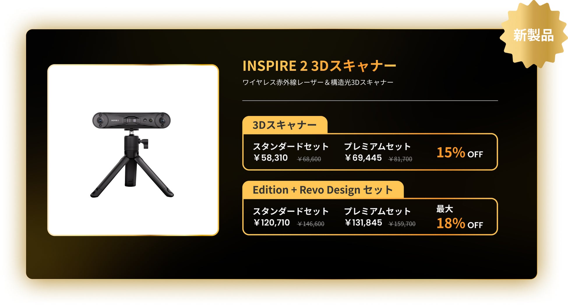 対象製品は、無線ブルーレーザー工業精度を実現するMetroYシリーズ、入門最高性価比で屋外スキャンを実現するINSPIRE 2、マーカー・スプレー不要で大物体の高速スキャンが可能な光学トラッキングスキャナーTrackitの全シリーズ。