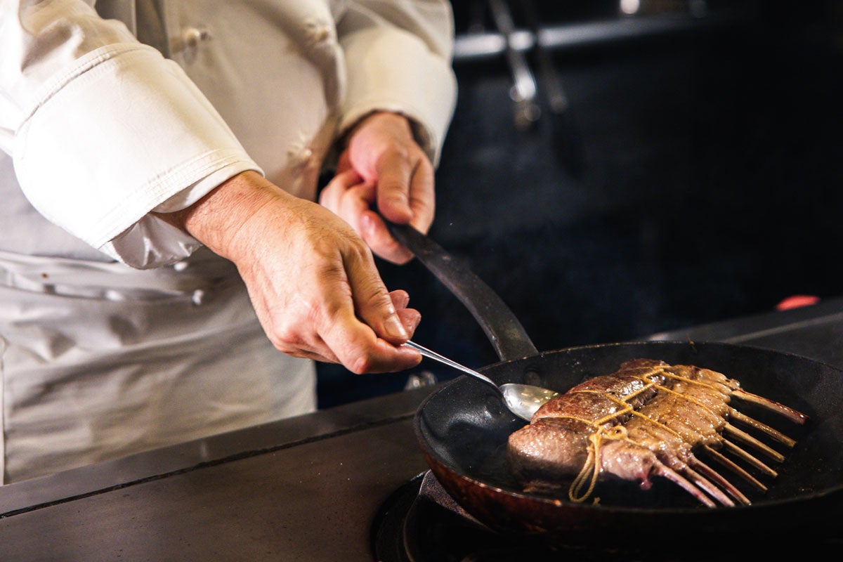 ホテルオークラ東京の初代総料理長小野正吉の「料理は心」の言葉を大切にしていると語る西本総料理長。ホテルオークラの伝統の味を創り上げた先人シェフが残したレシピを引き継ぎつつ、九州の豊かな食材を使用し、美食の新境地を切り拓いていきます。