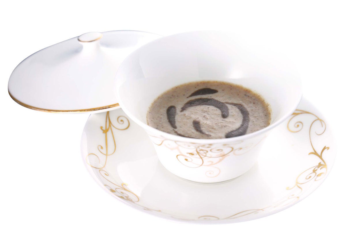 マッシュルームのクリームスープ トリュフクーリの彩り