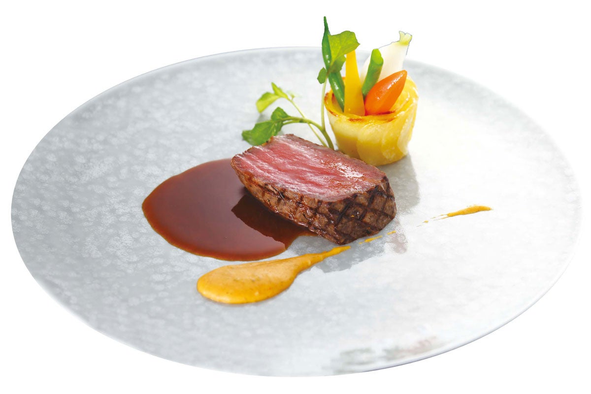 ホテルオークラ東京・福岡で研鑽を積んだ西本総料理長の集大成ともいえるオークラ伝統の美食を継承するスペシャルメニュー。華やかな盛り付けも目を楽しませる、祝宴にふさわしい逸品です。