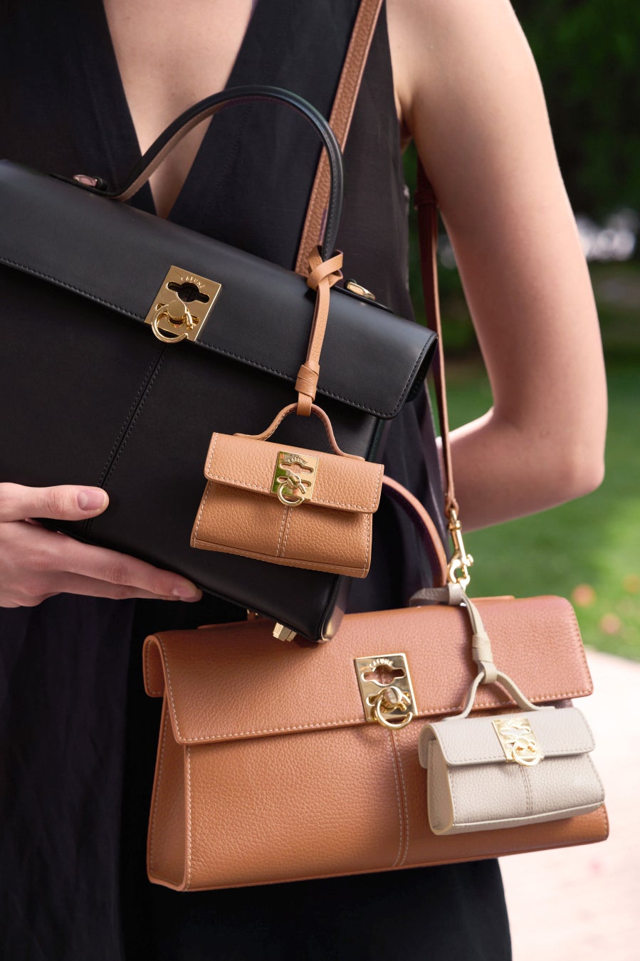 高級イタリア製のペブルドレザー、トップハンドル、Cロックと、本物のStanceバッグのディテールを細部まで忠実にミニチュアライズし、小さくても洗練されたチャームに仕上げました。