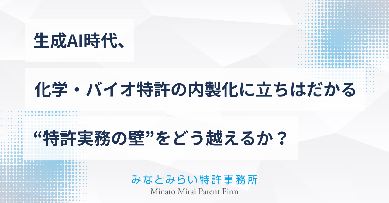 近年の生成AIの進化と業務効率化の潮流により、今後、特許明細書の企業内製化が進むと予想されますが、特に専門性の高い化学・バイオ分野では、特許明細書作成における実務難易度の高さが大きな障壁となっています。