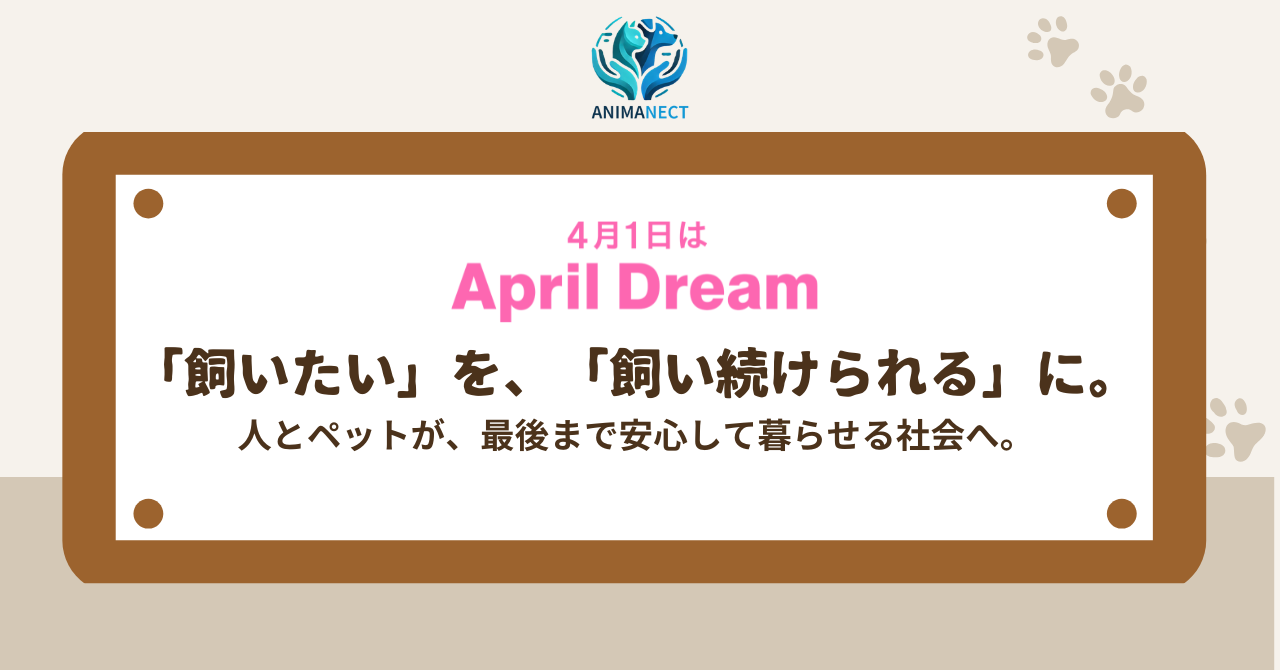 当社は、4月1日を夢を発信する日にしようとするApril Dreamに賛同しています。このプレスリリースは「株式会社ANIMANECT」の夢です。私たちは、人とペットが最後まで安心して暮らし続けられる社会を目指すという夢を発信します。
