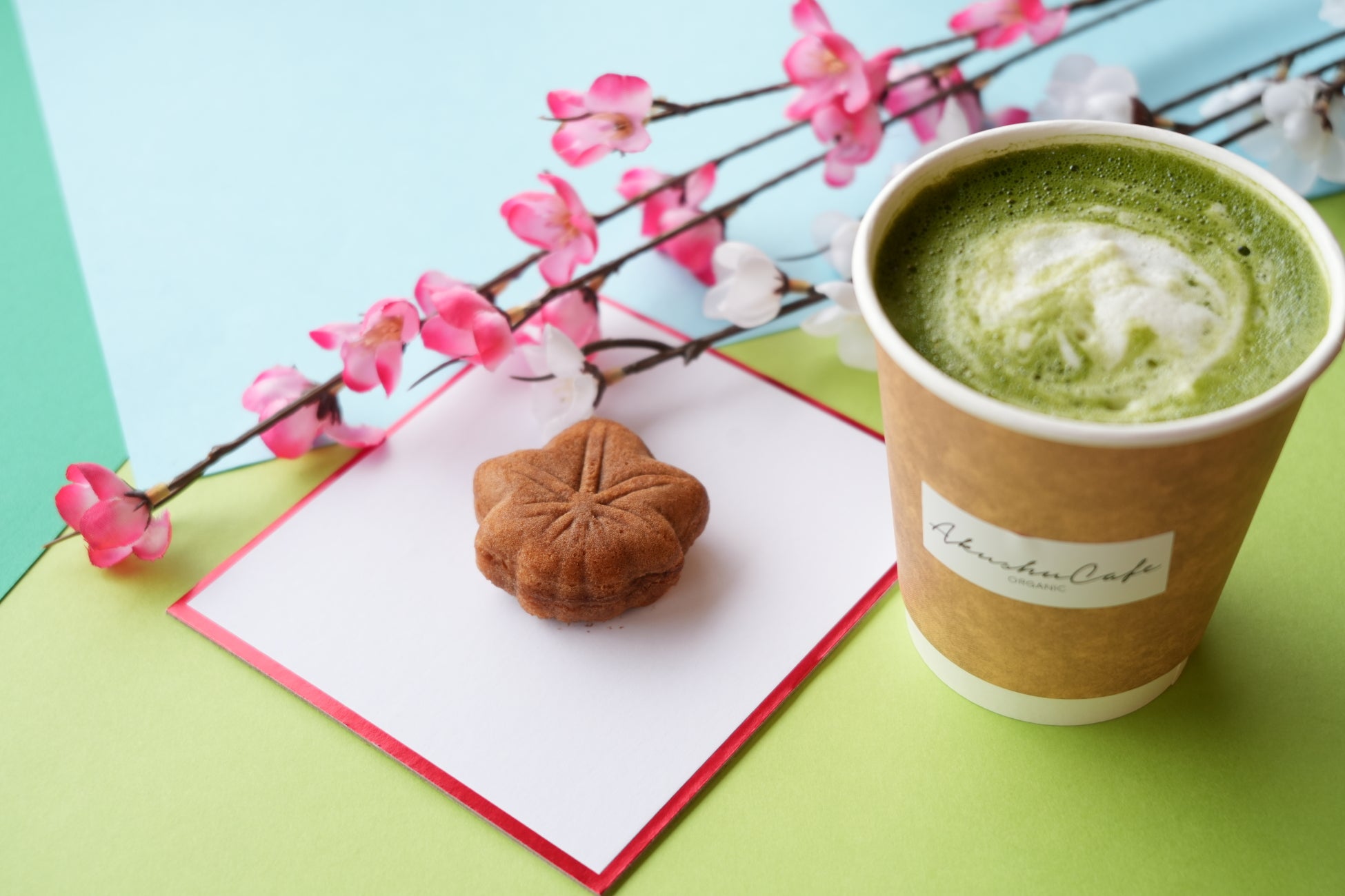 握手カフェオーガニックでは、1月限定商品として有機抹茶を使用したドリンクが登場。「お芽出たい(おめでたい)」といわれるお茶に、「健康で清らかな一年を」という願いを込めました。心も体も温まるひとときを、ぜひご堪能ください。