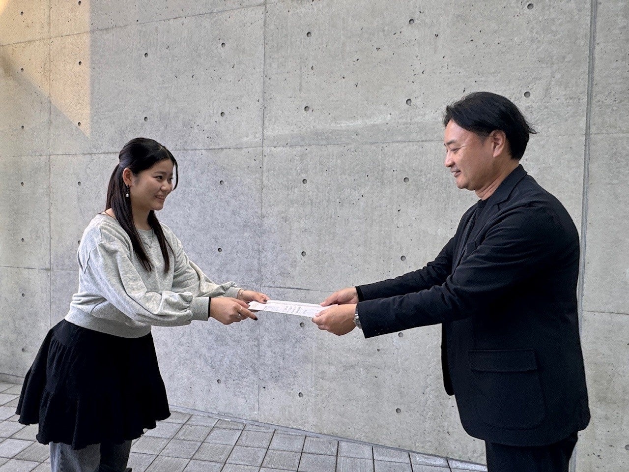 同日、1万人目の入館者には、尾道市長 平谷祐宏氏、中国新聞備後本社代表 武河隆司氏、そして建築祭総合ディレクターであり「ナイン・ヴィジョンズ展」実行委員会委員長の白井良邦の立ち会いのもと、認定証と記念品として展覧会オリジナルグッズ(Tシャツ、トートバッグ、手帳など)、ちゅーピー人形の贈呈が行われました。