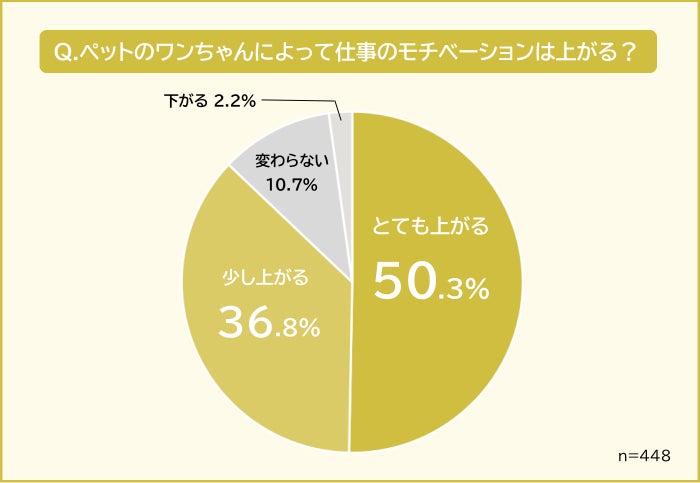 ペットのワンちゃんに癒やされることで仕事のモチベーションが上がる人は87.1%