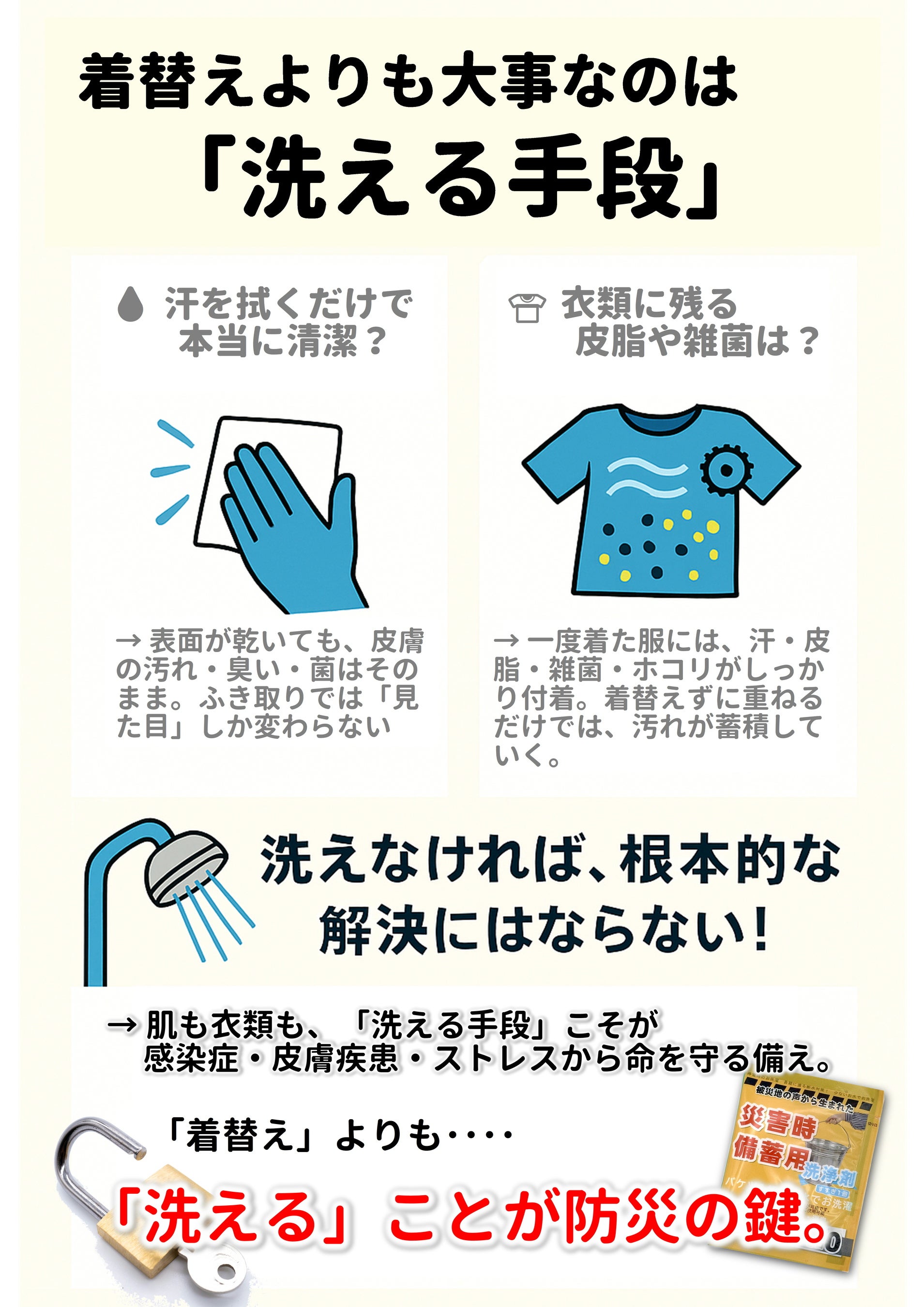「清潔を備蓄する」新常識 ― 断水下でも衛生を守り、命をつなぐ洗浄セット誕生!
