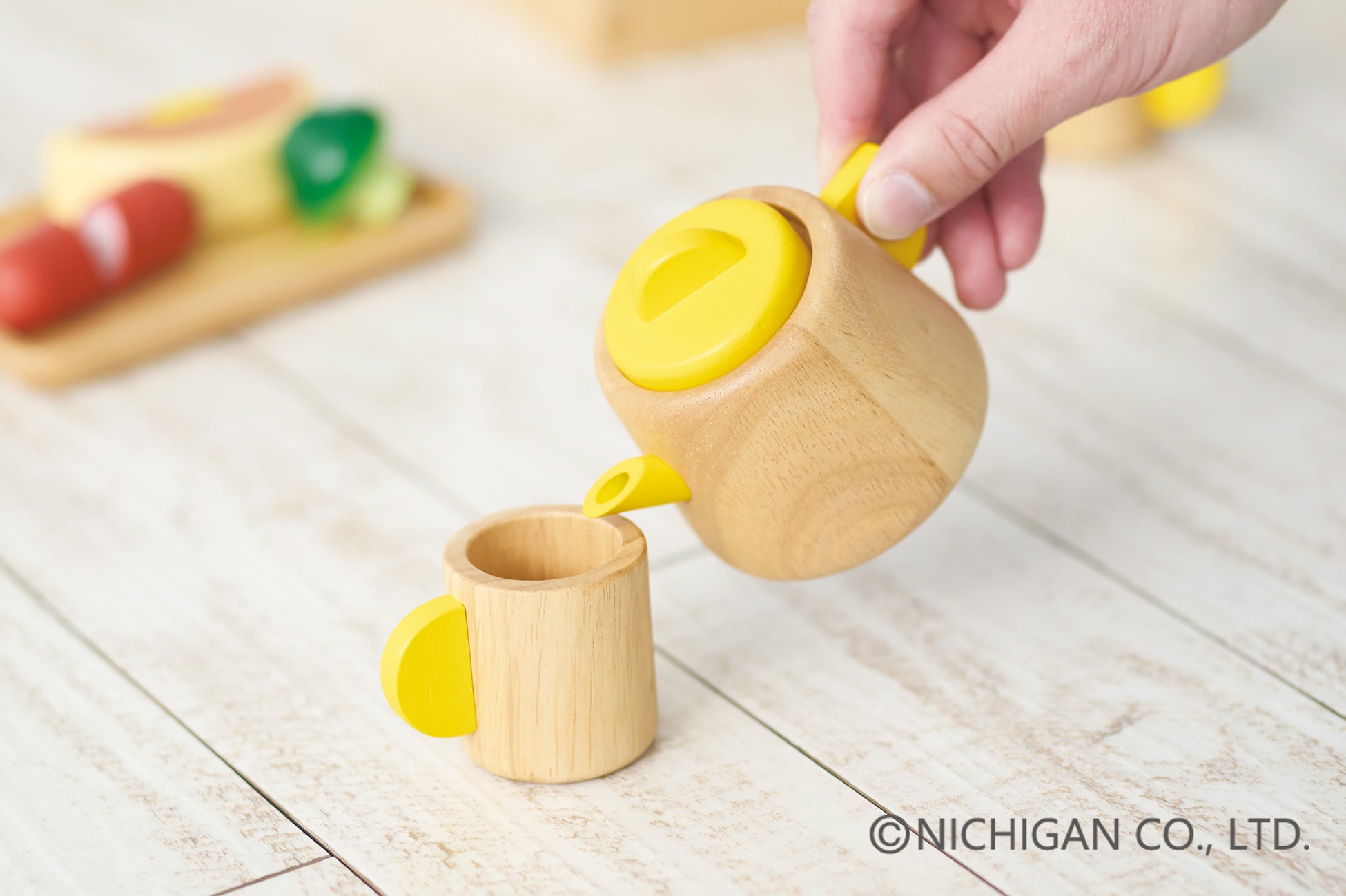 コンロで調理をする→トレーに食事をのせて運び、提供する → 食べる → 料理を下げる の一連の流れを、このアイテムひとつで体験できます。ご家庭での朝食の様子を再現するのはもちろんのこと、シェフや店員さん、お客さんになりきって、レストランごっこをするのもおすすめです。