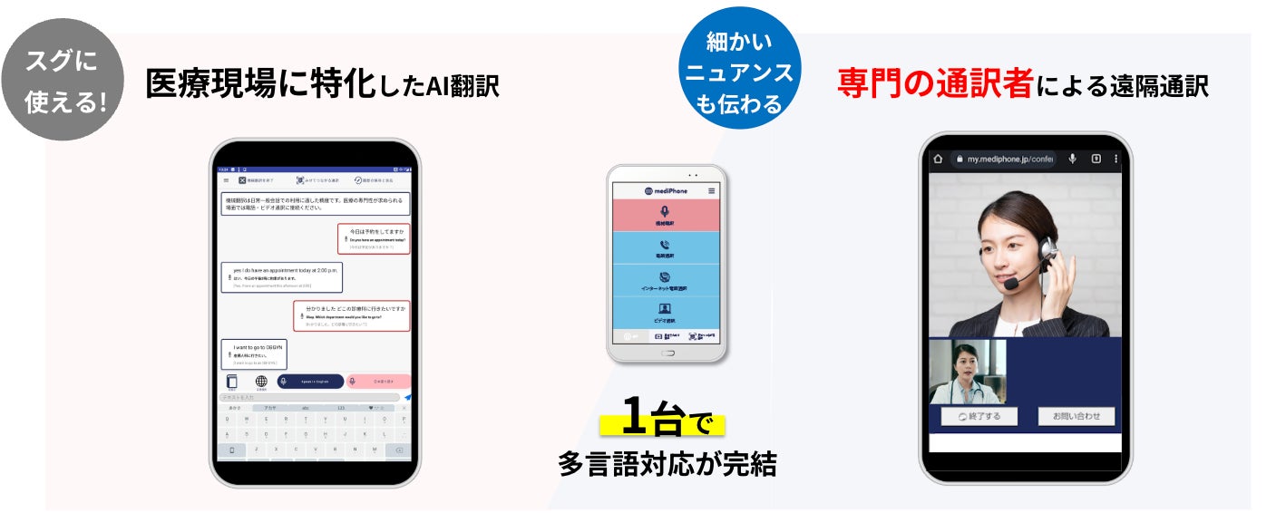 電話やビデオを通じた遠隔医療通訳サービス「mediPhone(メディフォン)」(https://mediphone.jp/ )、医療従事者向けの外国人患者受入れ関連の研修・セミナーの開催などの事業を展開し、医療機関の外国人患者受入れ体制整備を包括的に支援しています。