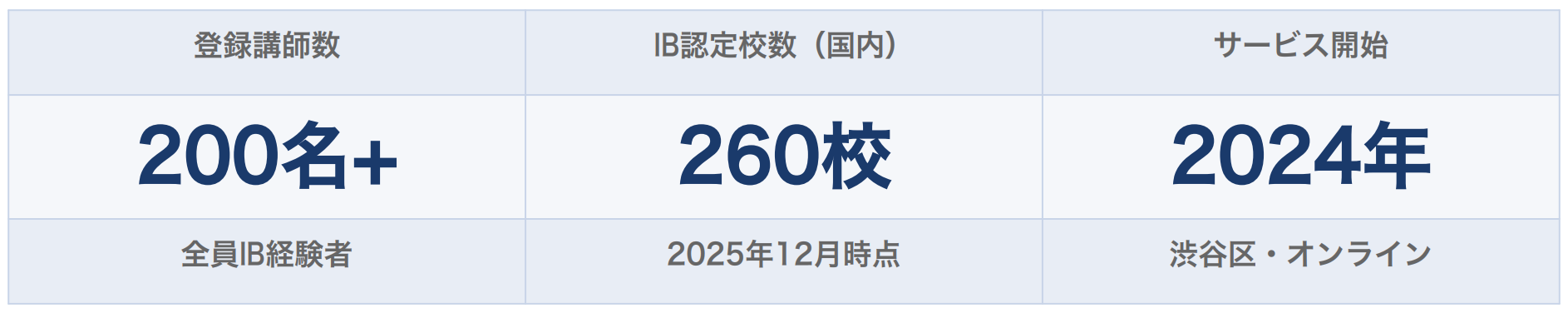 日本国内のIB認定校・候補校数は2025年12月時点で260校(文部科学省IB教育推進コンソーシアム調べ)に達し、IB教育を選ぶ家庭は年々増加しています。一方、IB特有の高難度な課題に対応できる専門家庭教師の不足は依然として深刻であり、質の高い学習支援へのニーズは高まる一方です。