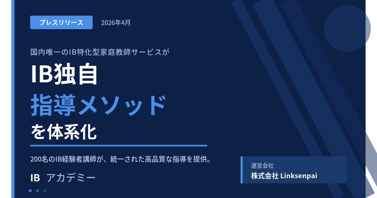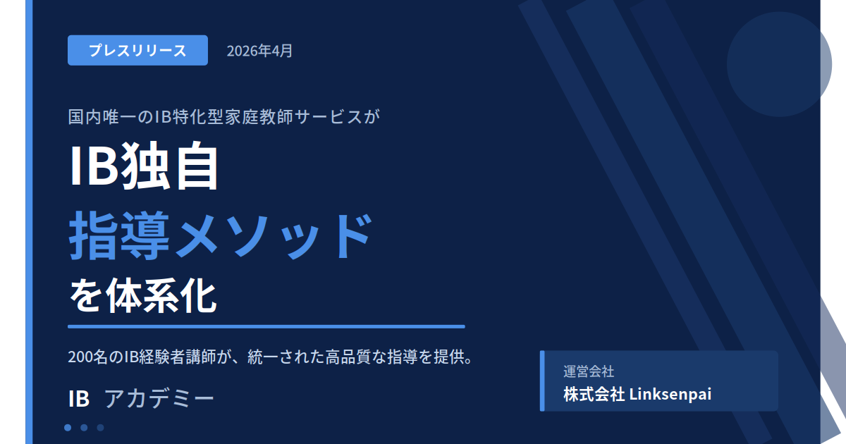 株式会社Linksenpai(所在地:東京都渋谷区、代表取締役:吉田志織)が運営するIB(国際バカロレア)専門オンライン家庭教師サービス「IBアカデミー」は、2026年4月、IB経験者講師200名超のノウハウを集約した 独自指導メソッドの体系化に取り組んでいることをお知らせします。