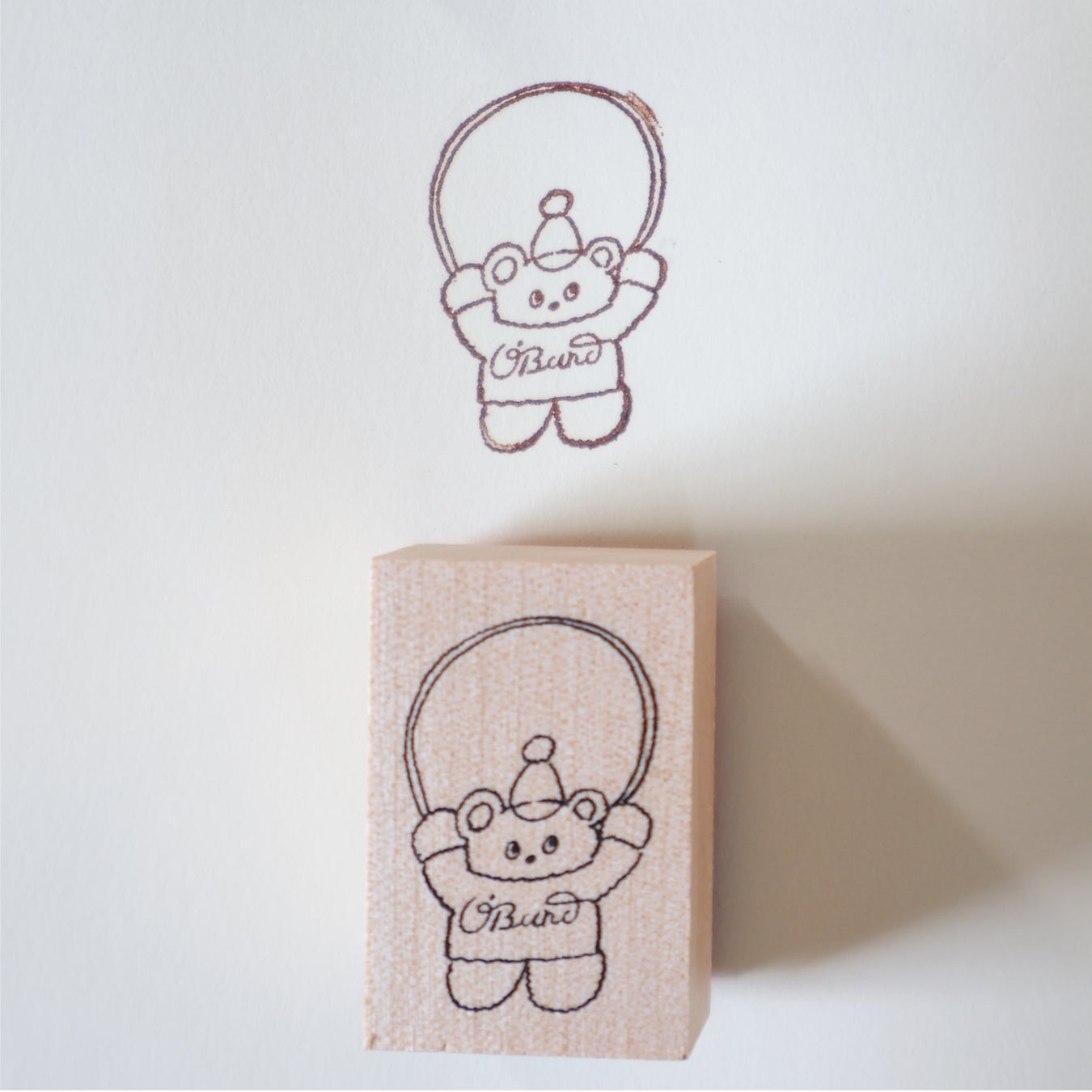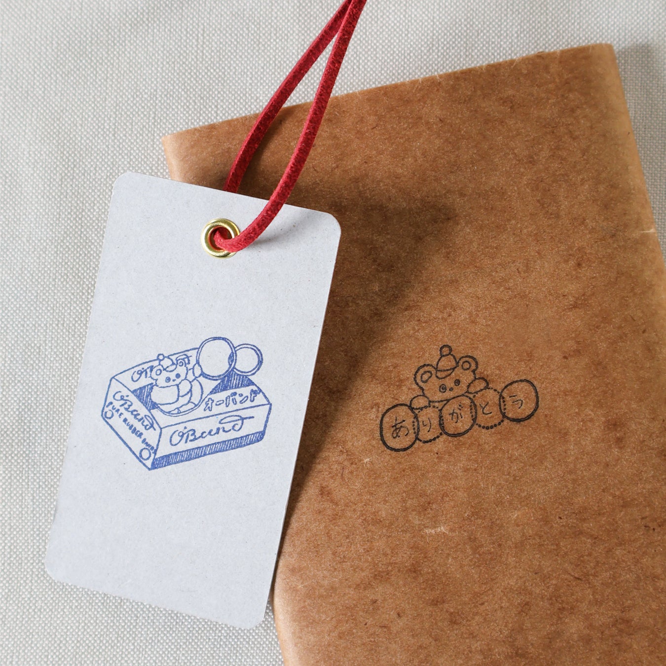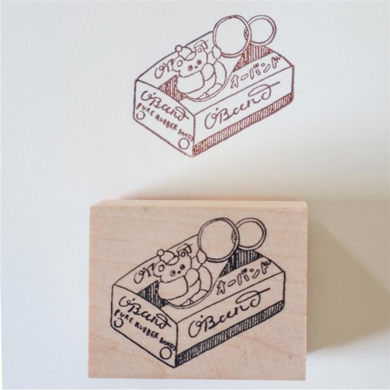 オーバンドの箱の輪ゴムを取り出す穴に、わグマが座っているようなスタンプ。
