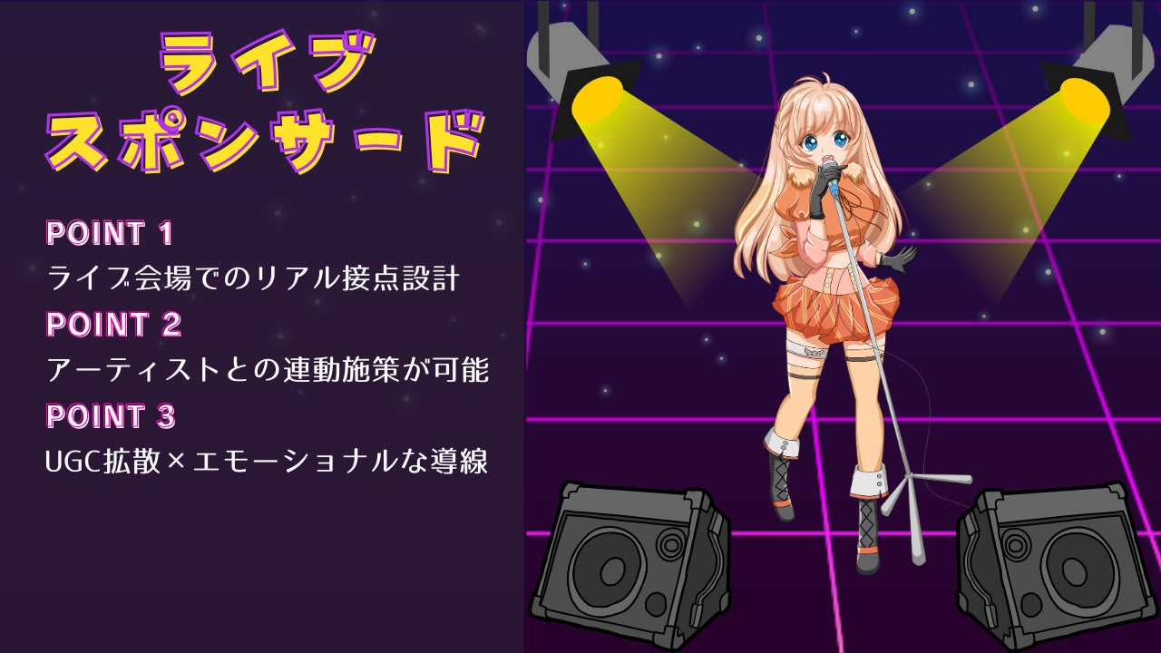 本サービスは、アーティストのライブやファンイベントなど“熱量のピーク”にいるファンとブランドを接続することで、従来の施策では得られなかった感情的な共感や購買行動を生み出すことを目的としています。