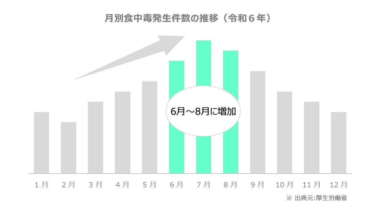 空気中の湿度が70%を超えると細菌やカビの繁殖スピードが急激に上昇し、厚生労働省の調査でも6月~7月に発生する食中毒件数は年間の約20%~25%を占めます。