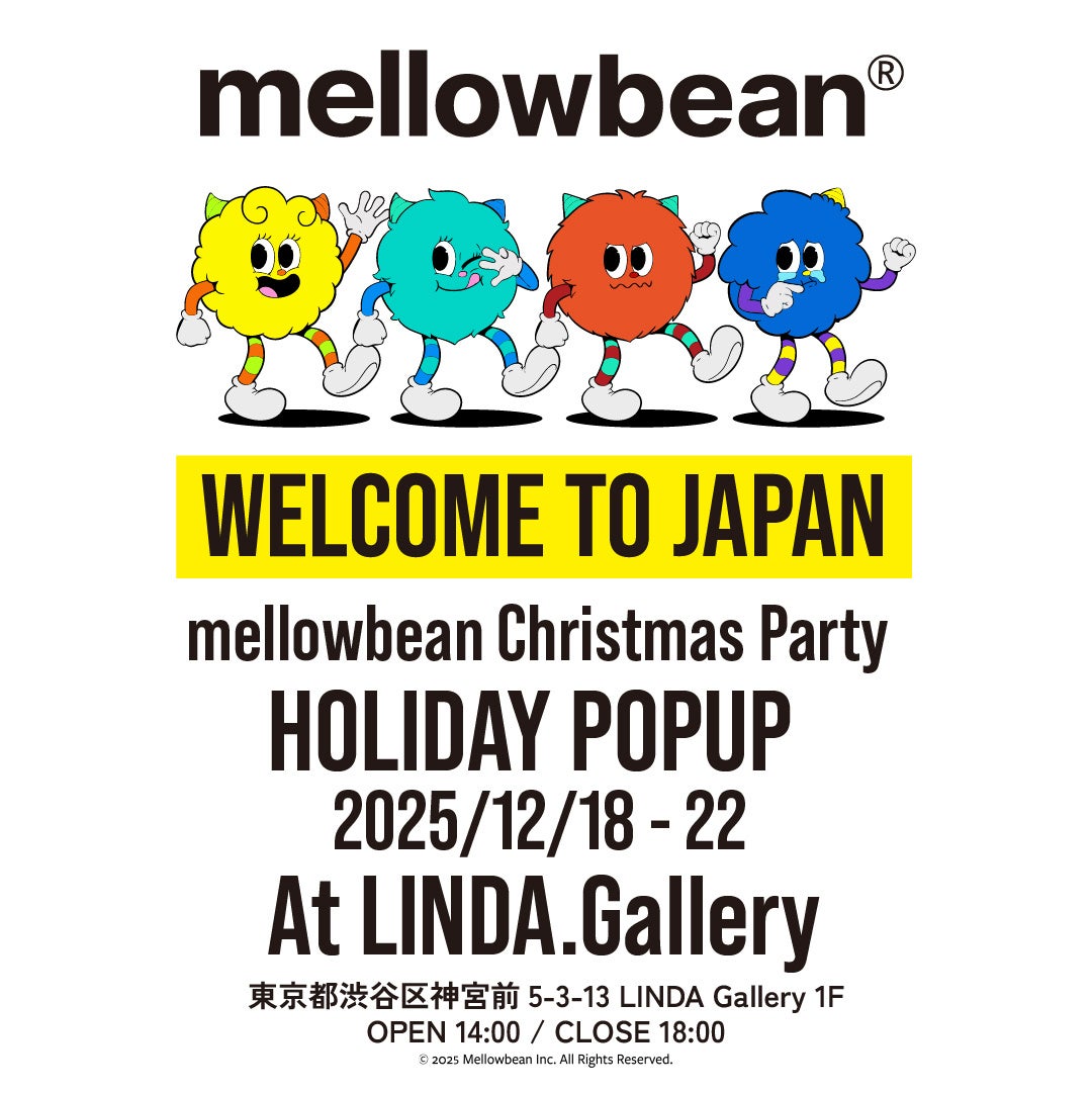 株式会社LINDA.(本社:東京都渋谷区、代表取締役:五十嵐LINDA渉)は、韓国発の人気のキャラクターmellowbean(メロービーン)の日本上陸を記念したリリースイベント「mellowbean Christmas Party」を2025年12月18日(木)から12月22日(月)まで開催いたします。