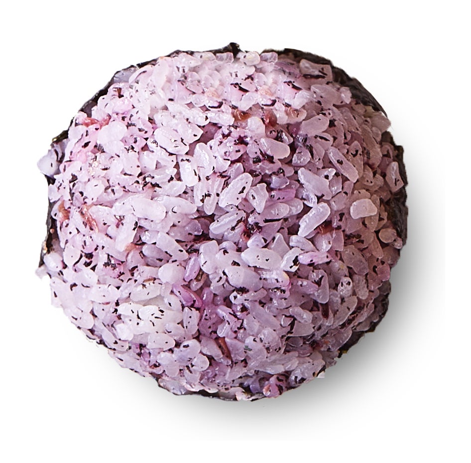 赤シソご飯に梅かつおを入れることで、梅の酸味と赤シソの爽快な香り、かつおの旨みが広がるおむすびです。