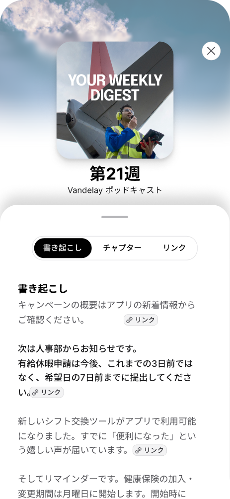 毎週、従業員一人ひとりにカスタマイズされたポッドキャストを自動配信