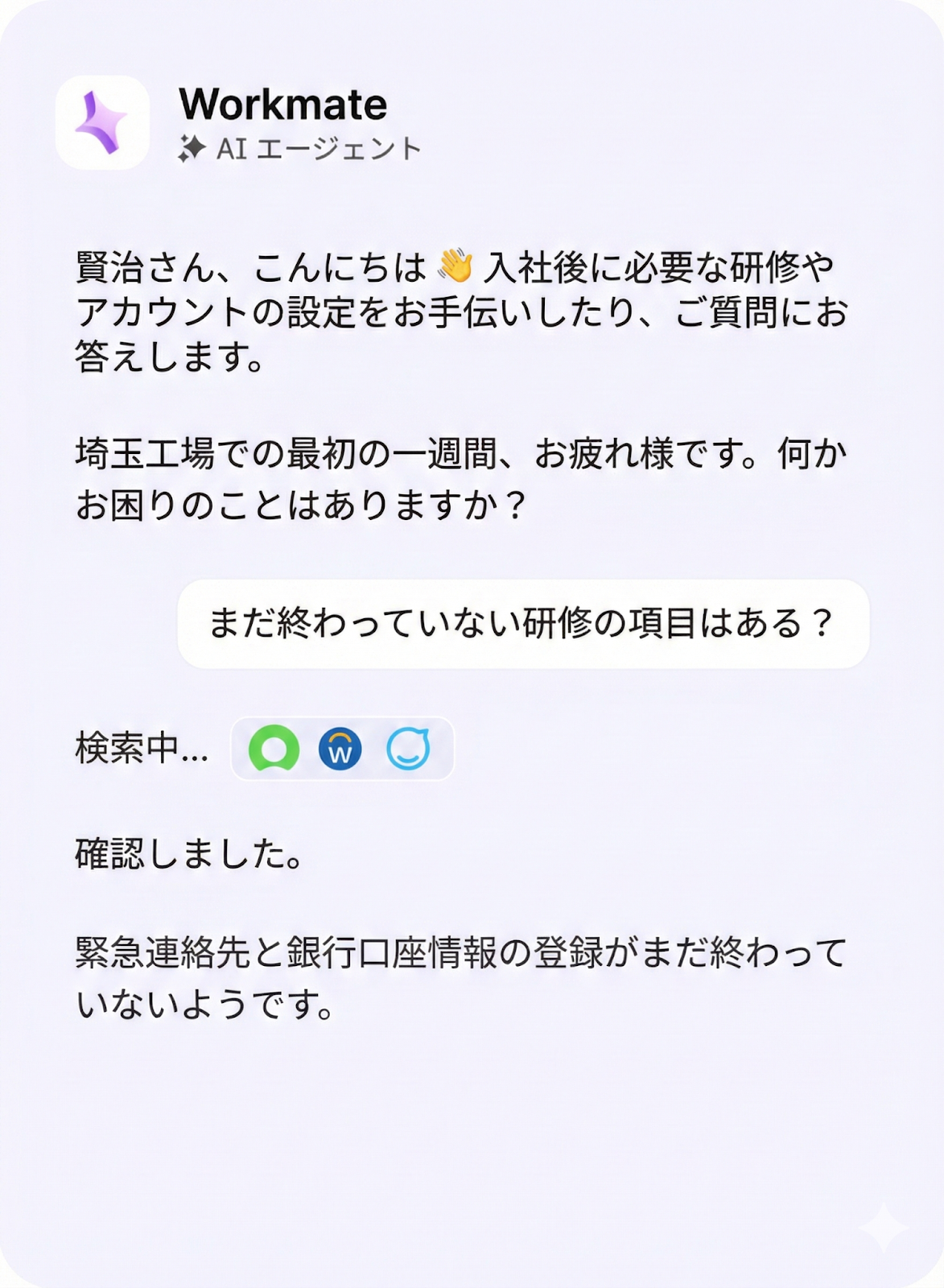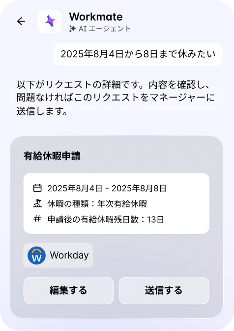 例えば「有給休暇はどこから申請できますか?」「経費精算のルールを教えてください」
