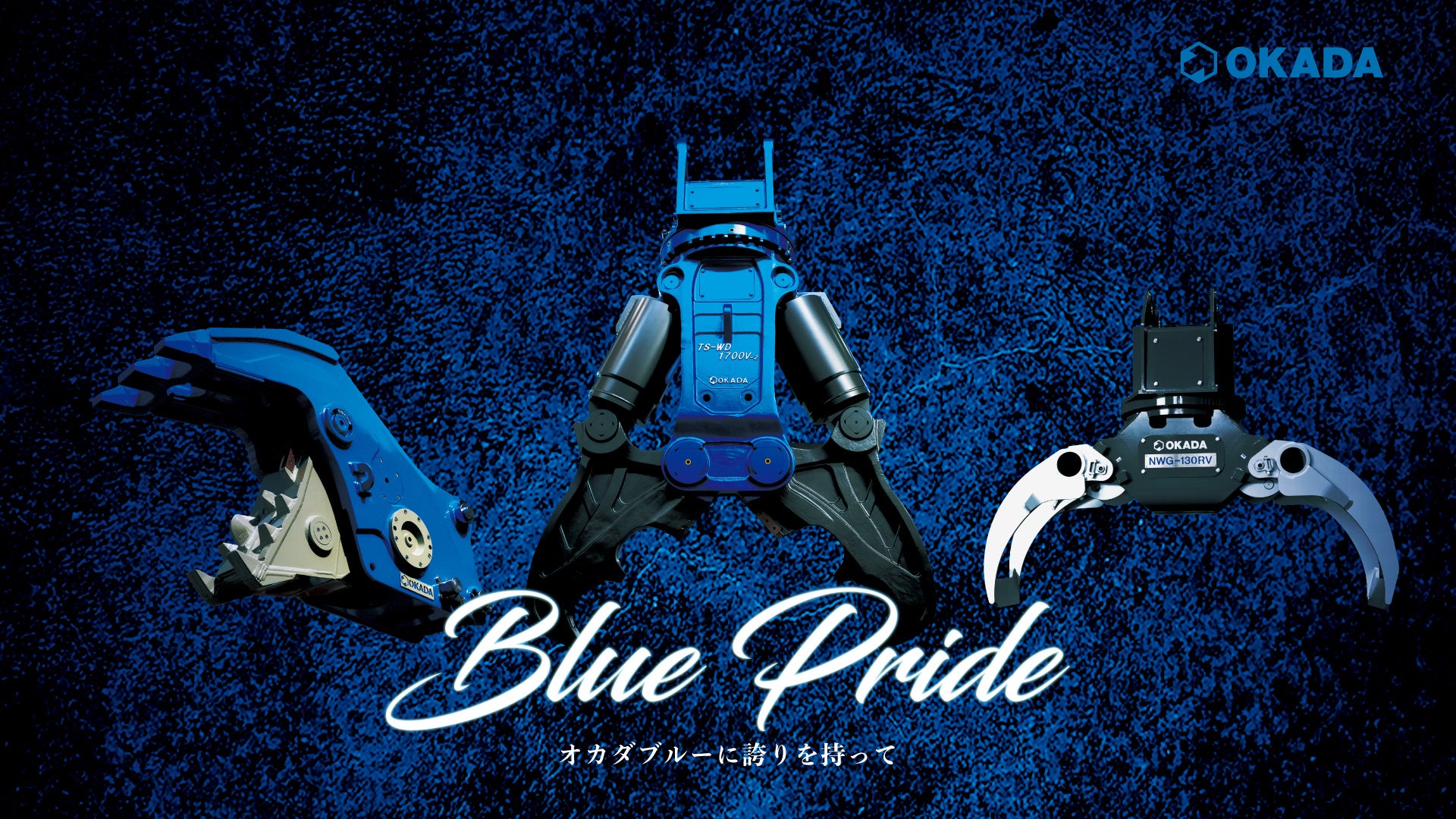 本タグラインには、コーポレートカラーである「オカダブルー」に込めた、技術と品質への自信、そしてものづくりに対する誇りの想いが表されています。