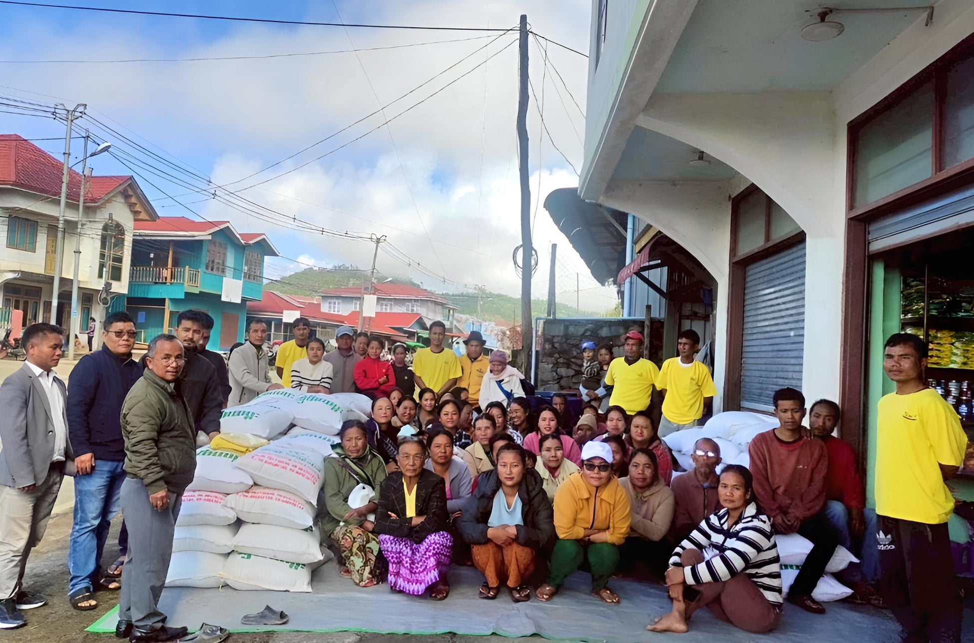 そして、現地 Rev. Dr. Bishop Ca Kung(チン州のキリスト教会監督)氏との指揮連携のもと、閉ざされていたカレーミョ(Kalaymyo)から州都ハカ市まで、約6万7,000食分(約5㌧)の主食米を安全に輸送し、およそ200世帯を超える家庭への配布を無事完了しました。