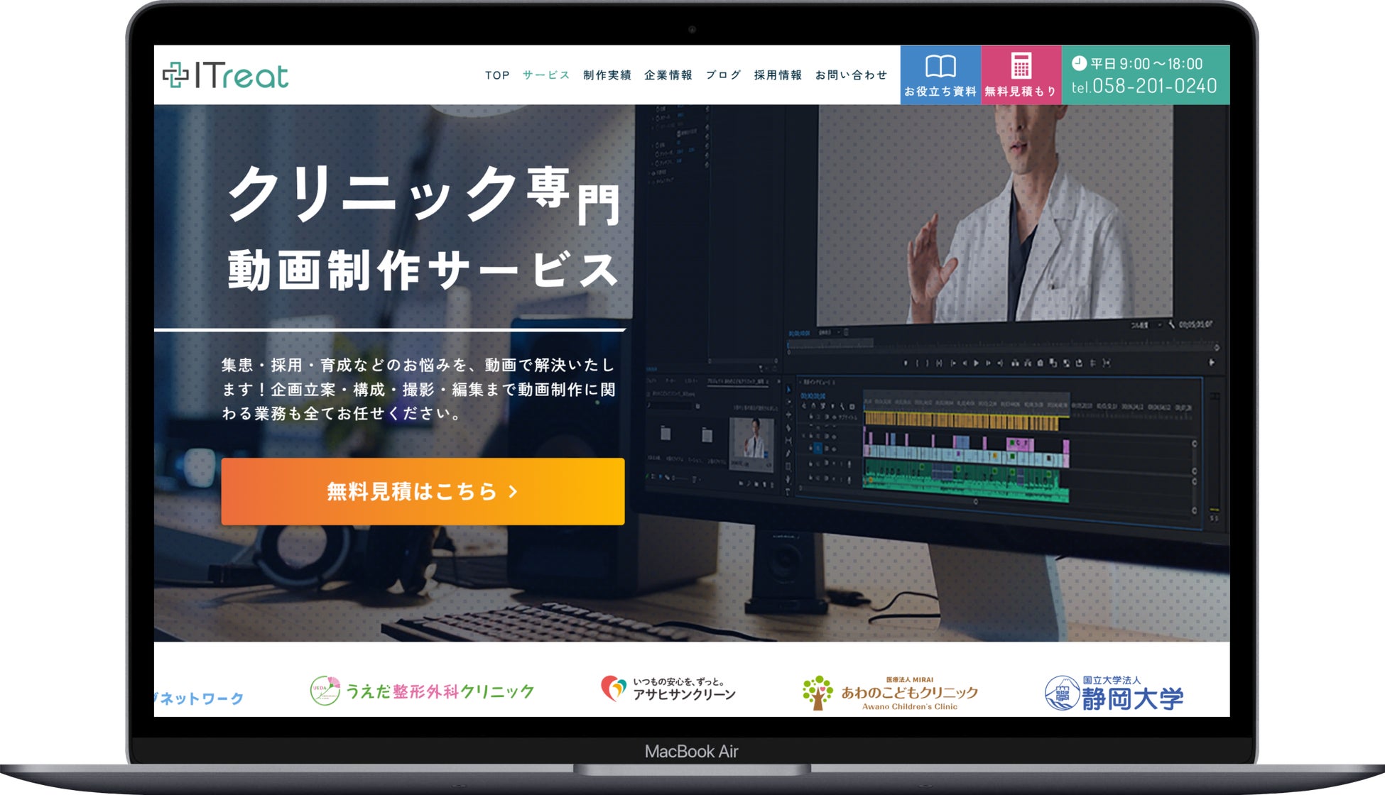 医療機関向けのWeb制作・マーケティング支援を行う株式会社ITreat(本社:岐阜県岐阜市)は、近年ニーズが高まっている動画制作サービスにおいて、多くの医療機関からご好評をいただいています。
