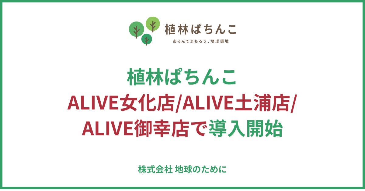株式会社平成興業(所在地:茨城県、代表取締役:片桐 真伯)が運営するALIVE女化店・ALIVE土浦店・ALIVE御幸店の3店舗に、2026年4月8日より「植林ぱちんこ」が同時導入されます。