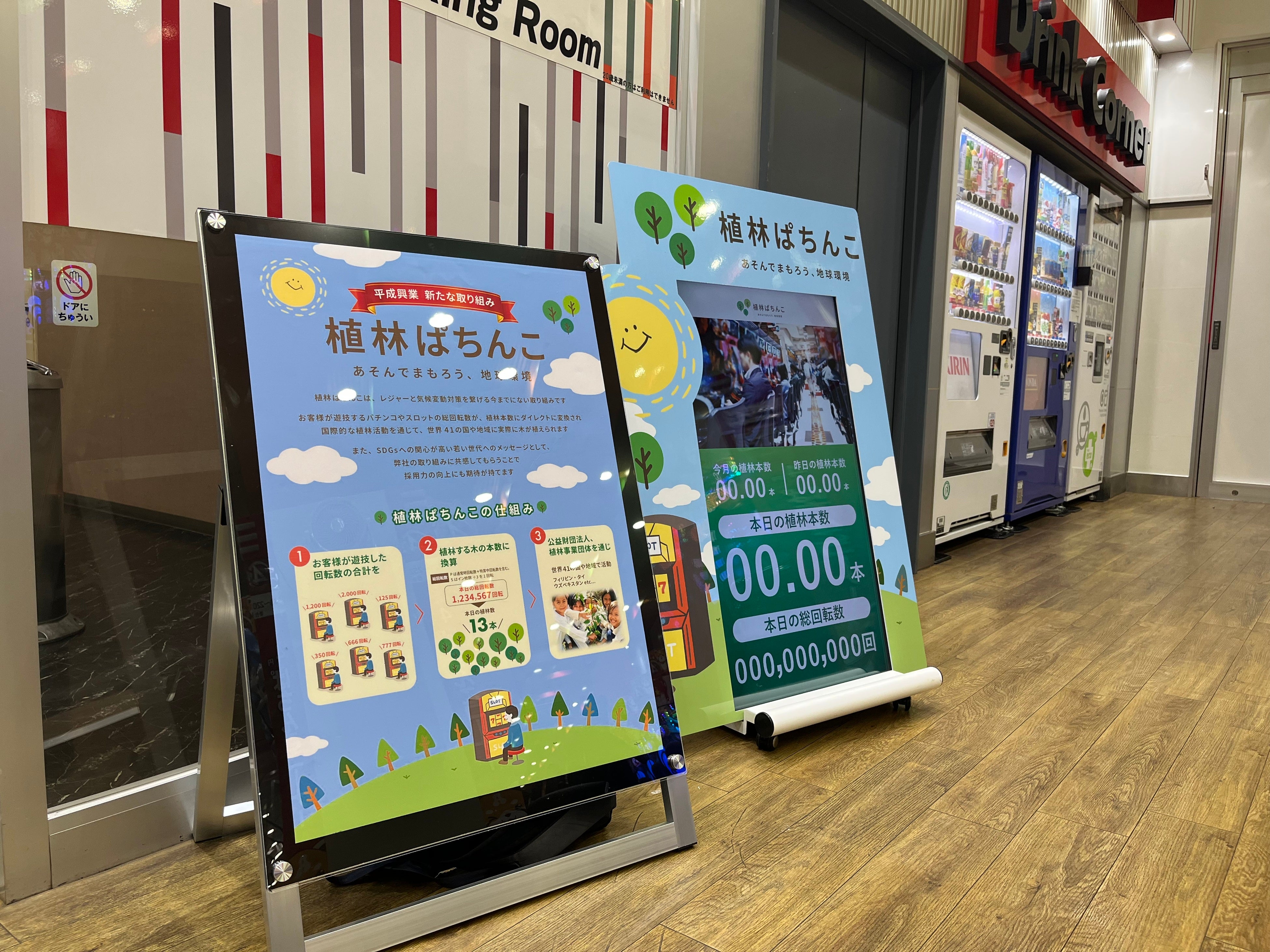 今回の導入により、株式会社平成興業が運営する「植林ぱちんこ」導入店舗は累計9店舗目となります。(※「植林ぱちんこ」全体の累計導入店舗数については別途ご確認ください)
