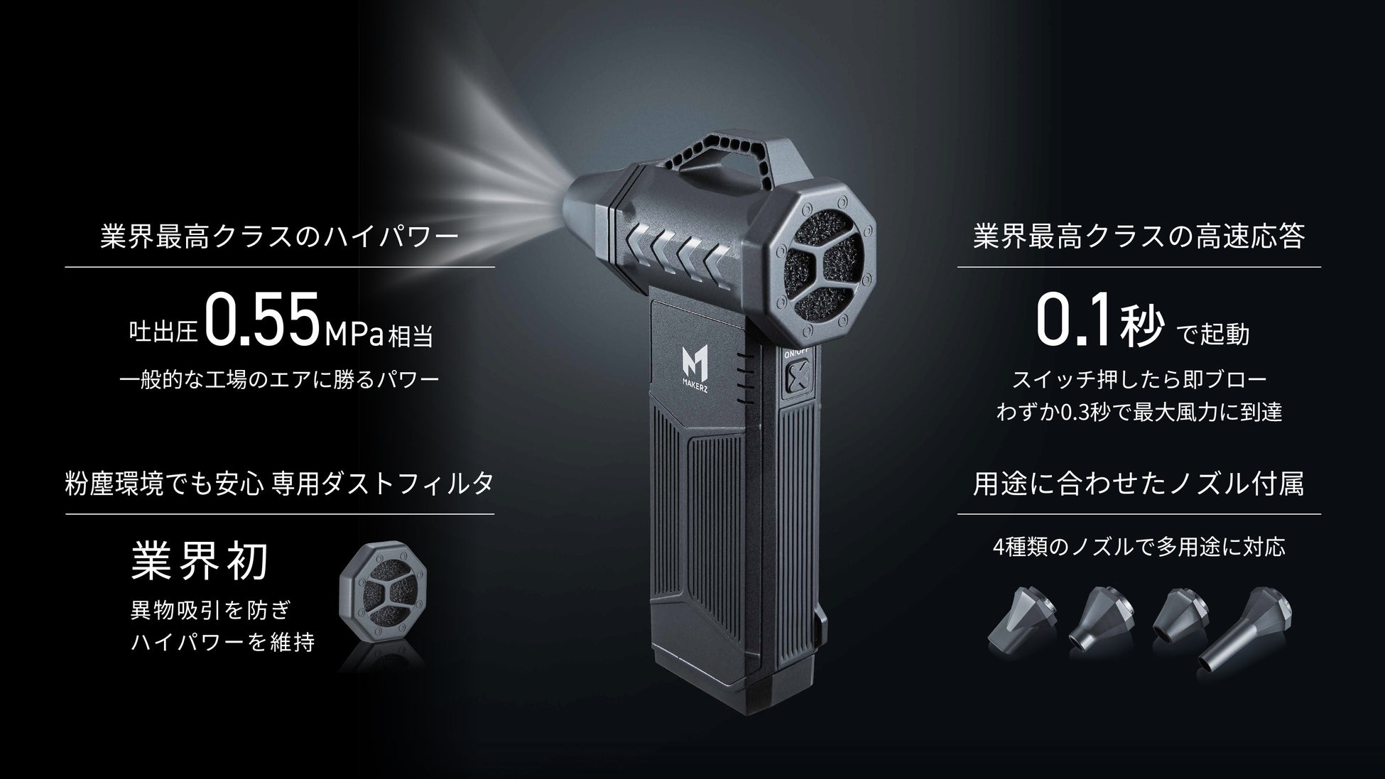 圧倒的な風を、その手に。現場品質の風圧と耐久性を備えた、工場エアに迫るハイパワー「ハンディエアブローガン(充電ステーション付き)」をAmazonで販売|株式会社メイカーズ(MAKERZ)