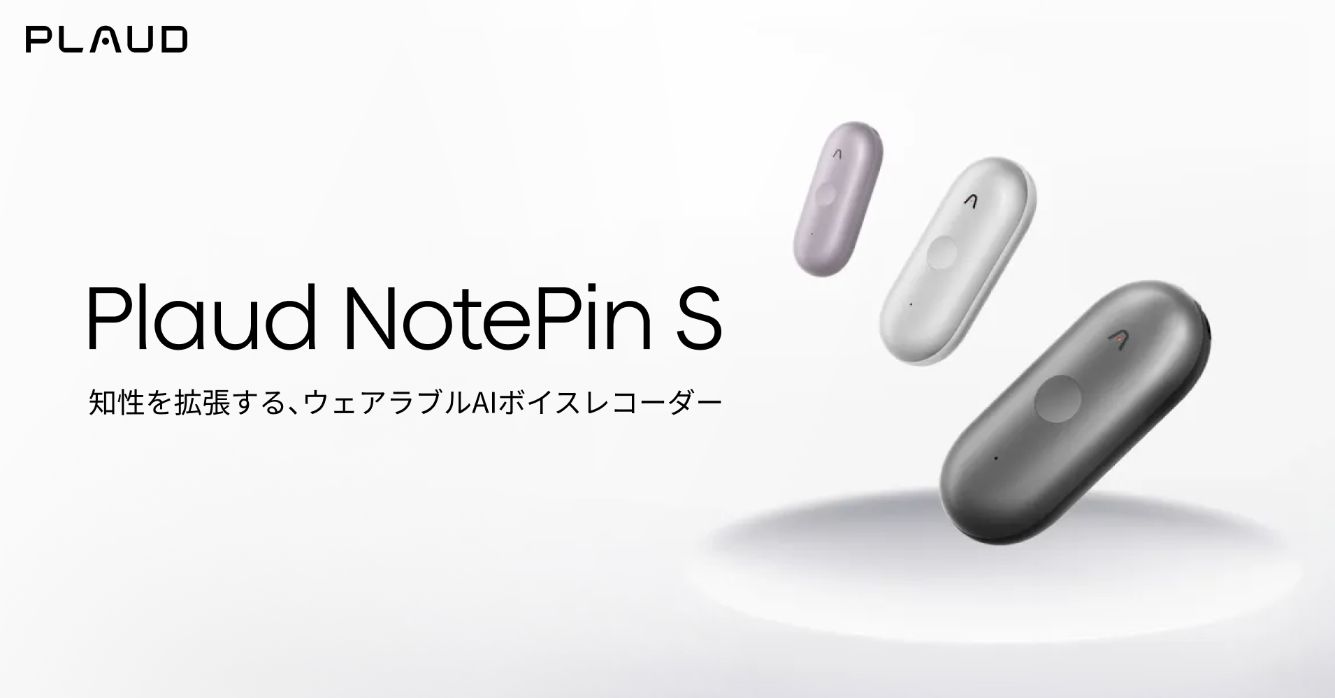 AI議事録ソリューションを展開するPLAUD株式会社(本社:東京都渋谷区)は、2026年3月19日、マンダリンオリエンタル東京にてPlaud 新製品発表会を開催し、ウェアラブルAIボイスレコーダー「Plaud NotePin」シリーズの最新モデル 「Plaud NotePin S(プラウド ノートピン エス、以下「NotePin S」)」を2026年3月23日(月)から日本市場で発売することを発表しました。