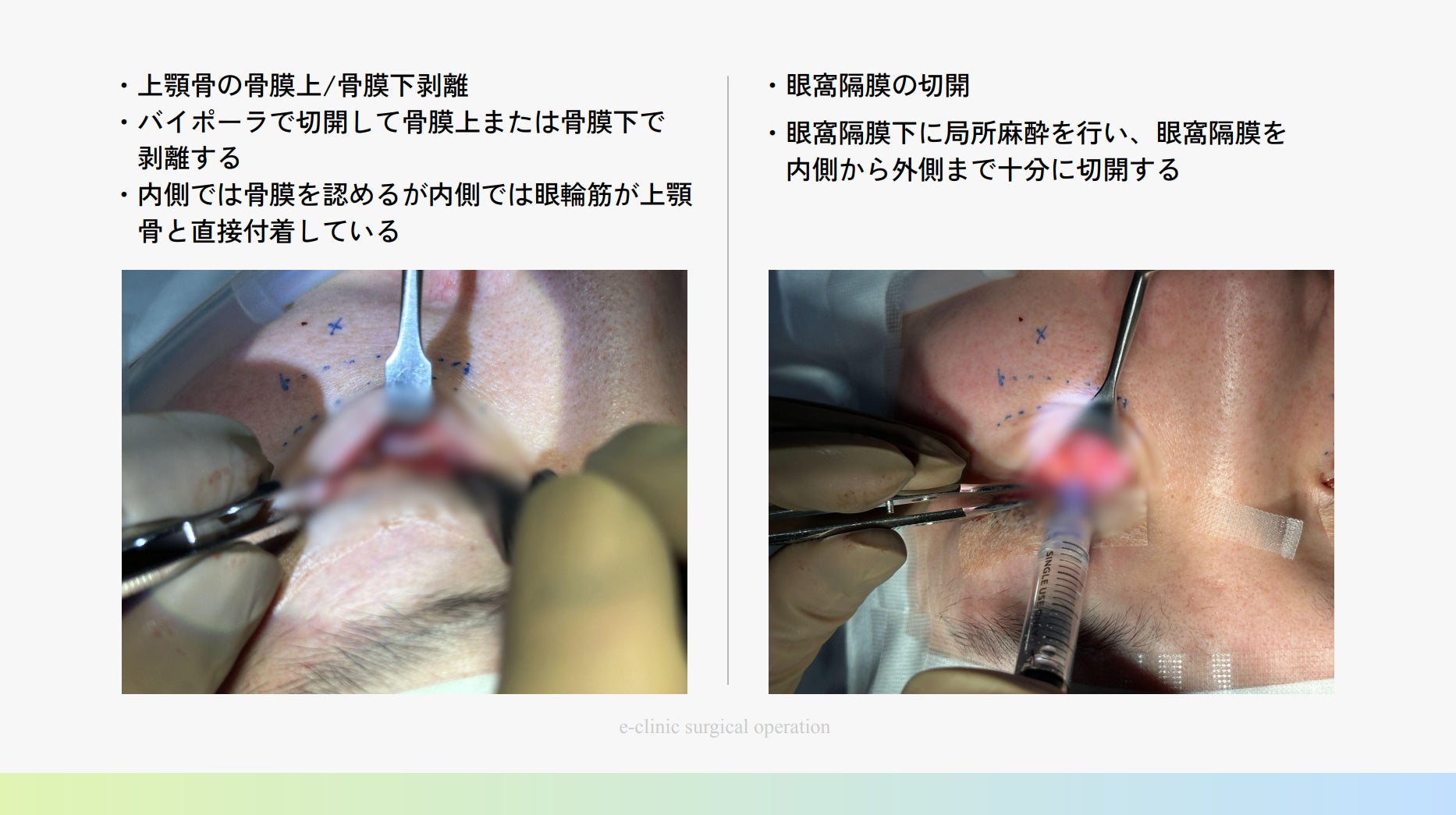 また、併せて目頭切開(Z法)も講義が開催され、蒙古襞の強さやパーツバランスに応じた切開デザイン、後戻りを防ぐための剥離の重要性等が語られました。さらに下眼瞼領域では、前回に引き続き裏ハムラ法(経結膜的眼窩脂肪移動術)が取り上げられ、クマの原因分類や、ORL剥離によるティアトラフ改善の理論、脂肪の移動・固定法などの講義が行われ。眼窩脂肪を活かした自然な改善が可能で、ダウンタイムも比較的短い点など、多くの参加者が関心を寄せました。