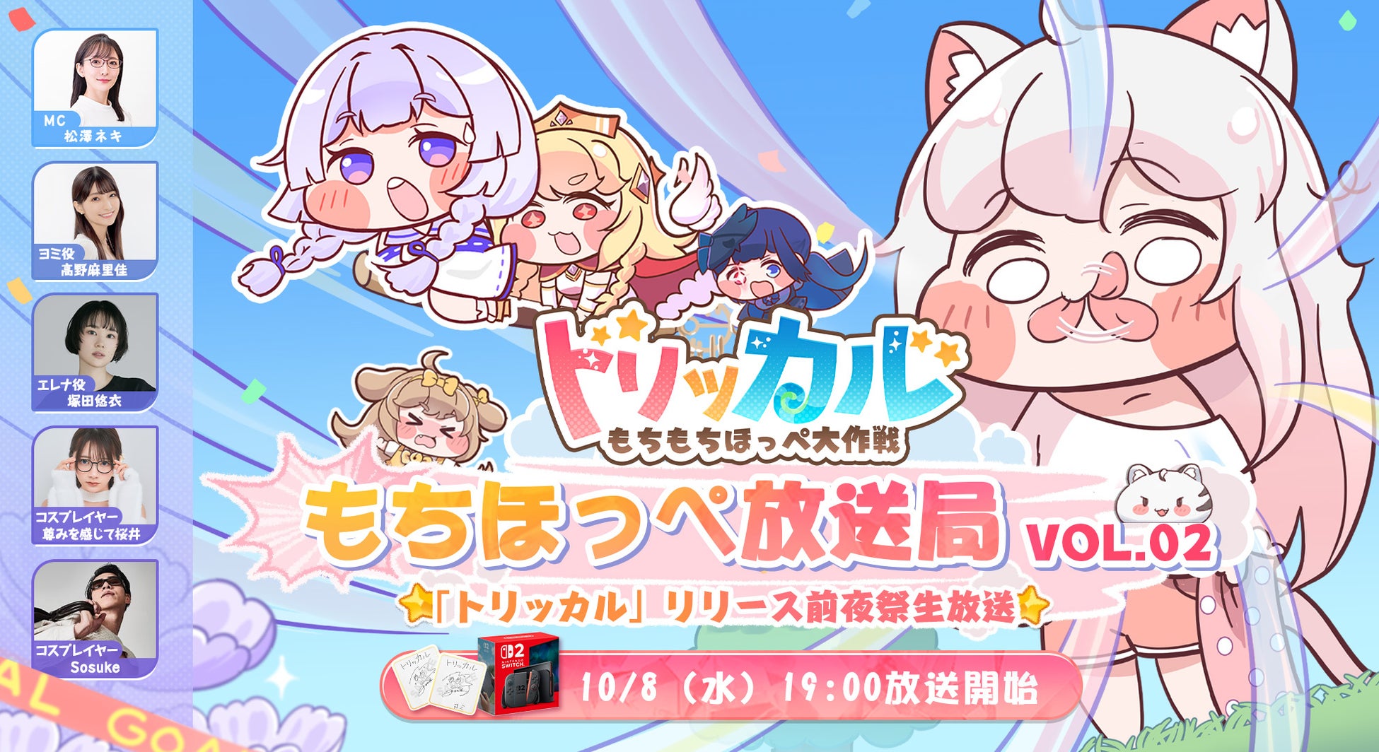 10月8日(水)19:00から『トリッカル・もちもちほっペ大作戦』公式YouTubeチャンネルと公式Xにて【#もちほっぺ放送局 VOL.2】スペシャル配信を予定しています。
