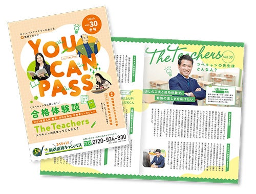今、資料請求をいただいた方や教室見学にお越しいただいた方には、個別指導キャンパスのミニ情報誌『YOU CAN PASS』をお渡ししています! 志望校に合格した生徒様と担当教室長のロングインタビューや、学習のお悩み相談などがお読みいただけます。