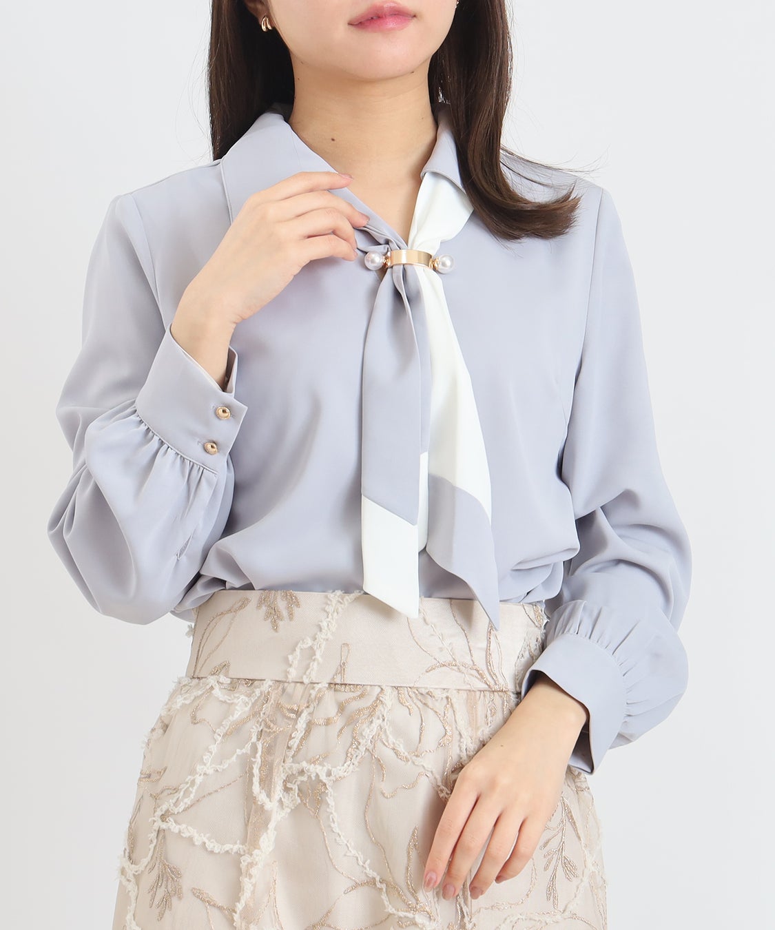 商品名:金具配色ボウタイブラウス
