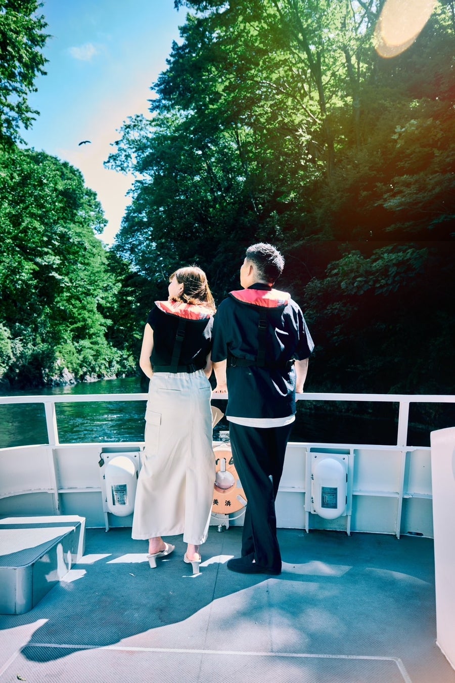 電池推進遊覧船のデッキでは、専属カメラマンが三方五湖の壮大なパノラマと穏やかな湖景を背景に、記念写真や家族写真を撮影。まるで湖を貸し切ったかのようなプレミアムな遊覧体験で、かけがえのない瞬間を写真に残します。