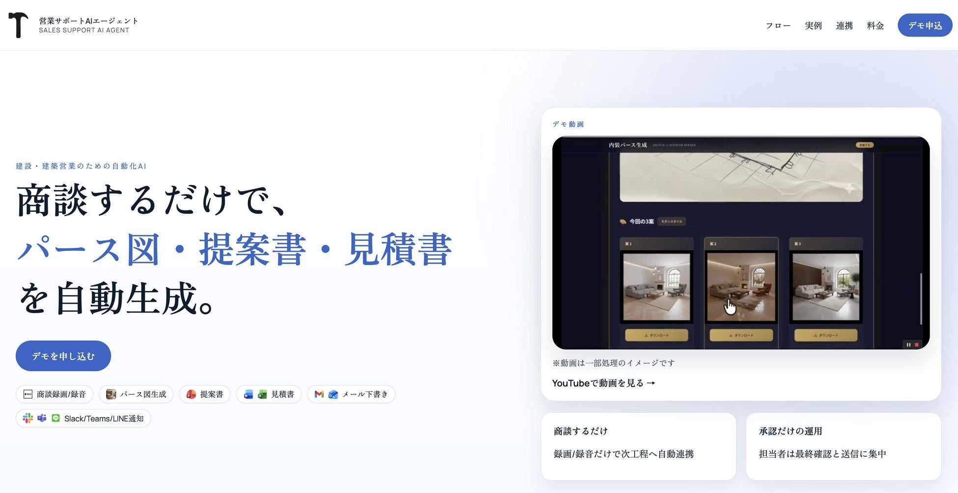 建設・建築営業の商談後業務を一括自動化。録音・録画だけで提案資料が完成し、担当者は商談に集中するための営業AIエージェント