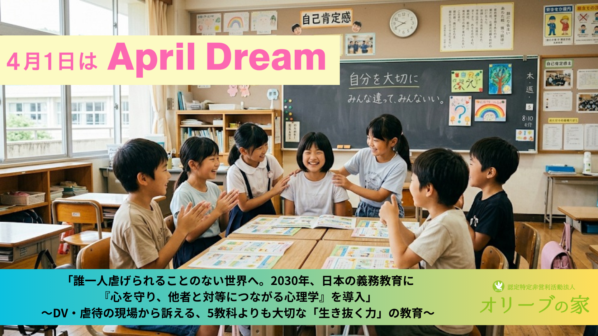 当団体は、4月1日を夢を発信する日にしようとするApril Dreamに賛同しています。このプレスリリースは「認定特定非営利活動法人オリーブの家」の夢です。