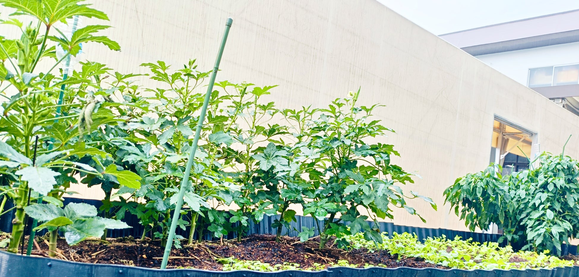 「今日の晩御飯、何にしようかな」と考えながら畑で新鮮なピーマンを収穫したり、採れたてのオクラを夕食の一品に加えたり。社員からは「スーパーで買う野菜と全然違う!」「子どもが喜んで野菜を食べるようになった」といった喜びの声が上がっています。